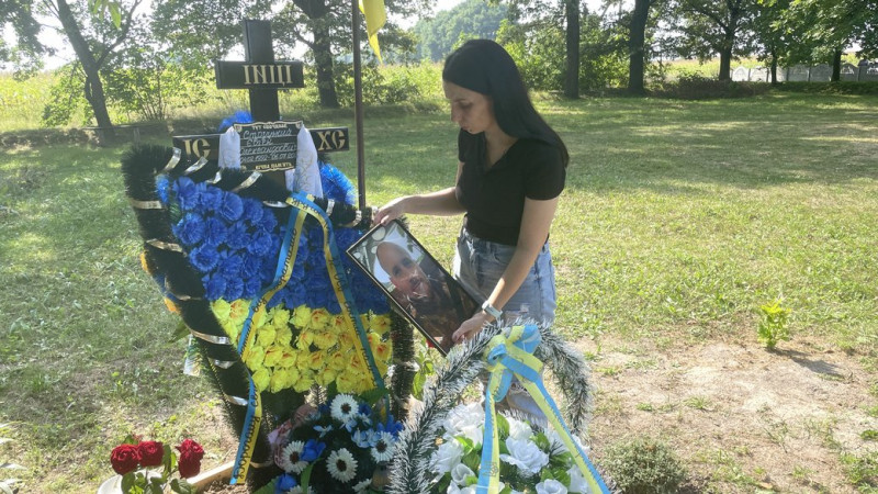 Дружина Євгена Струцького біля могили. Фото: Суспільне Полтава