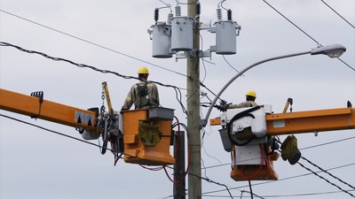 Ремонт пошкоджених ліній електропостачання. Getty Images
