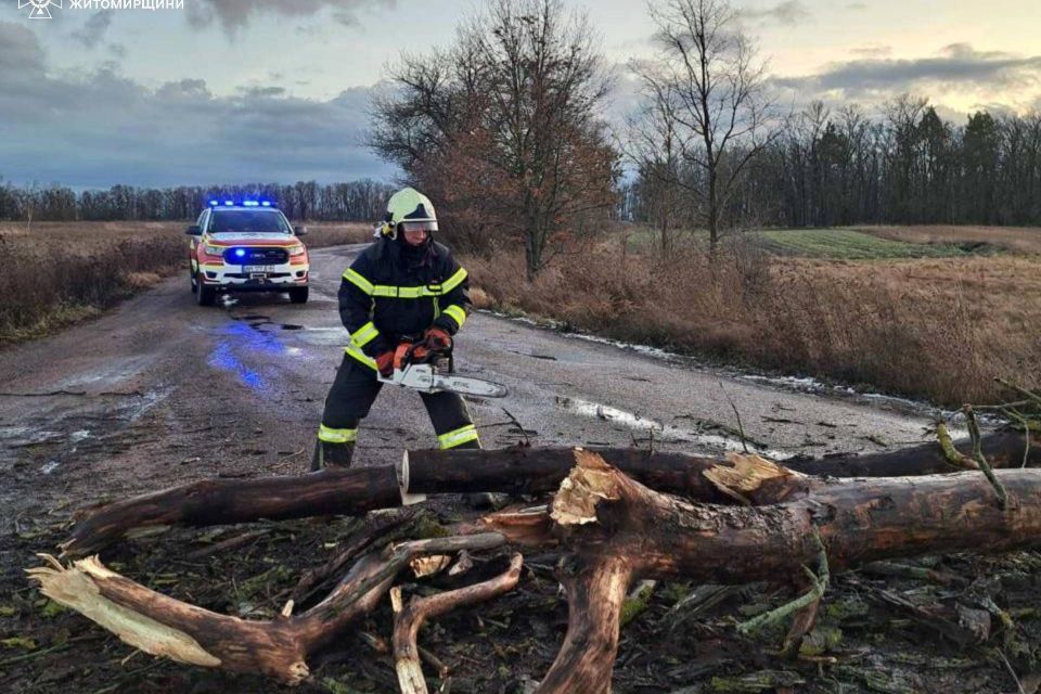 Також упродовж доби подібні аварійні роботи проводилися у Житомирському, Звягельському та Коростенському районах. Там загалом було прибрано з проїжджих частин доріг ще п’ять повалених негодою дерев.