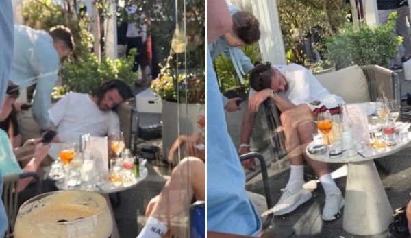 На опублікованих фото видно, що гравець у стані сп’яніння заснув за одним зі столів, на якому чимало коктейльних келихів.