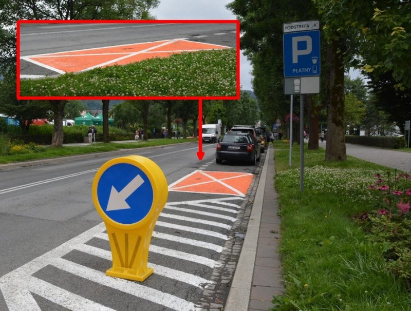 У польському місті Закопане з’явилася нова дорожня розмітка помаранчевого кольору у формі конверта, яка викликала численні запитання серед автомобілістів. Це відносно нове позначення почали застосовувати у безпосередній близькості від державних установ, таких як міська рада, відділення соціального страхування, районний суд, банки та головні автобусні зупинки. Про це пише Interia Motoryzacja.