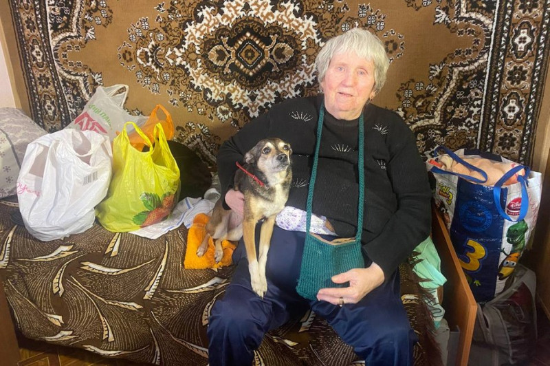 "Вона мене жаліє, плаче, я її з піпеточки виростила.Їй 13 років уже. Вона біжить за машиною, то куди я її залишу? А хлопці-волонтери взяли її з собою, і вона у мене на руках їхала. Спершу був скандал, і я сказала, що поїду з нею, але потім мені дозволили. Сказали собаку не чіпати. Тут теж її прийняли добре", — розповіла Ганна Ліпко.
