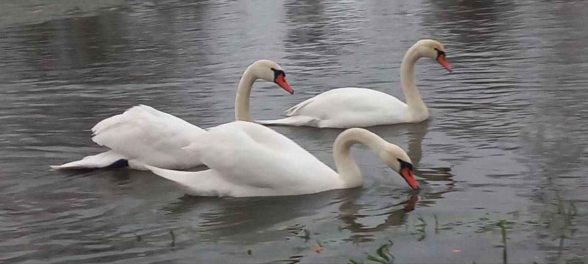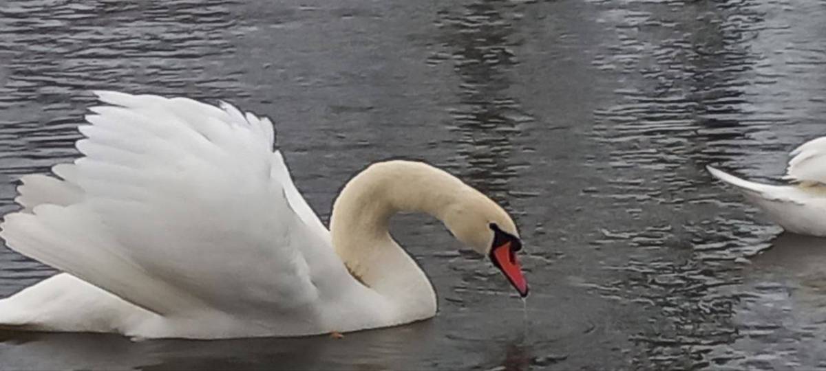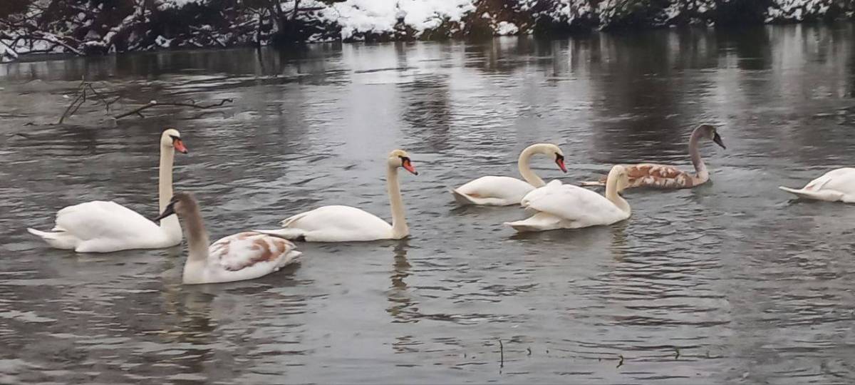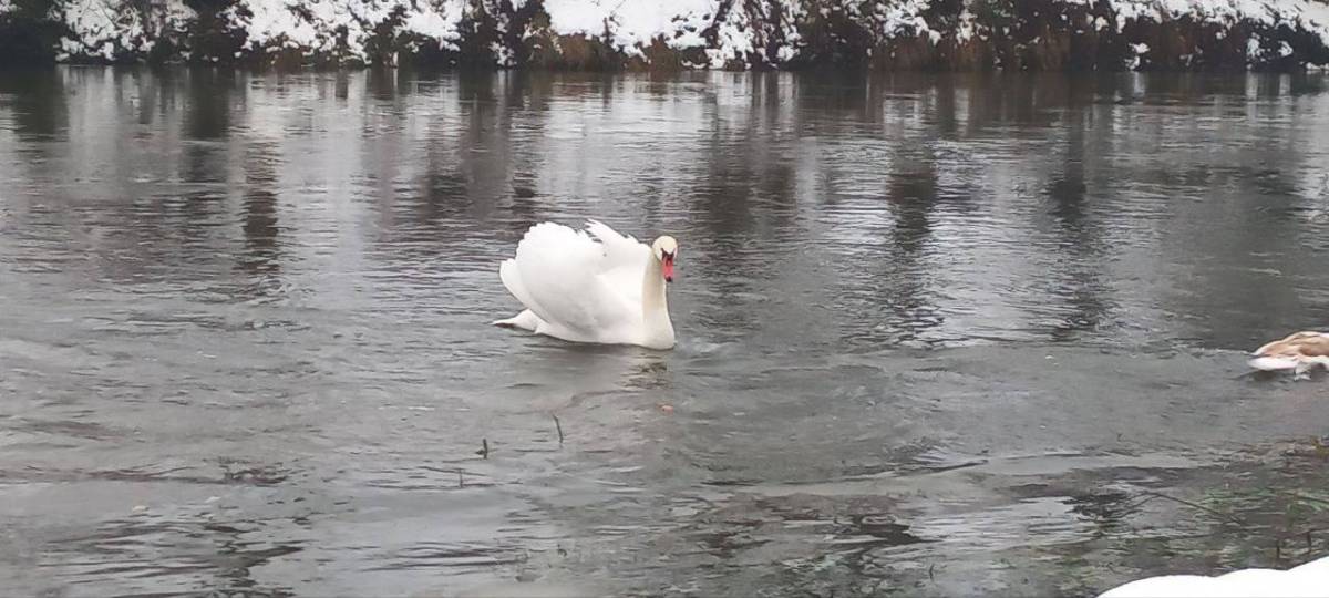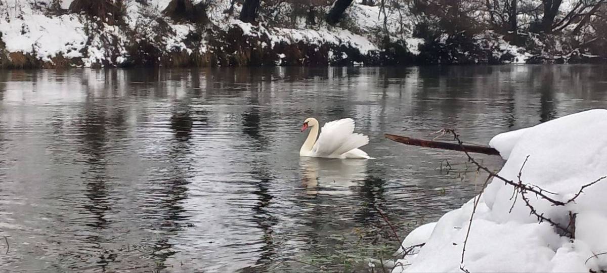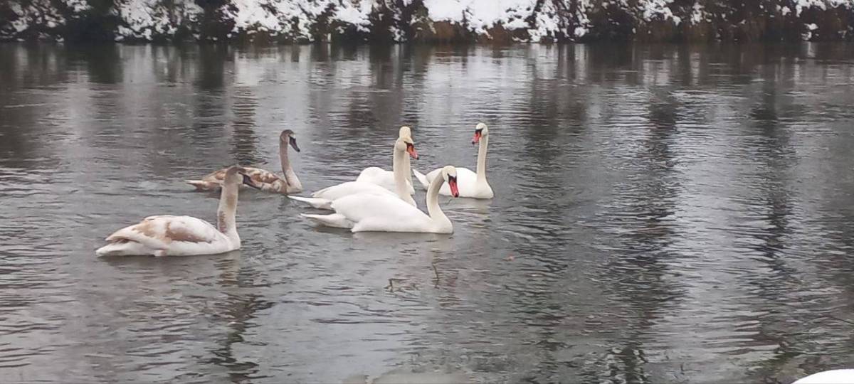 У селі Розвадів Стрийського району Львівської області на озері зимують лебеді.