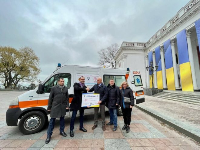 Общественная организация «Национальный совет по здравоохранению и безопасности» при поддержке Ассоциации украинцев в Вероне подарила нашему городу машину скорой помощи, которую доставили из Европы в Одессу.