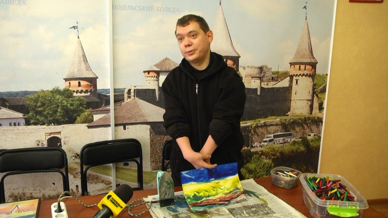Кирило – людина з інвалідністю. Розповідає, що у школі через це йому не дозволяли брати пензлика до рук, ставили низькі бали з малювання.