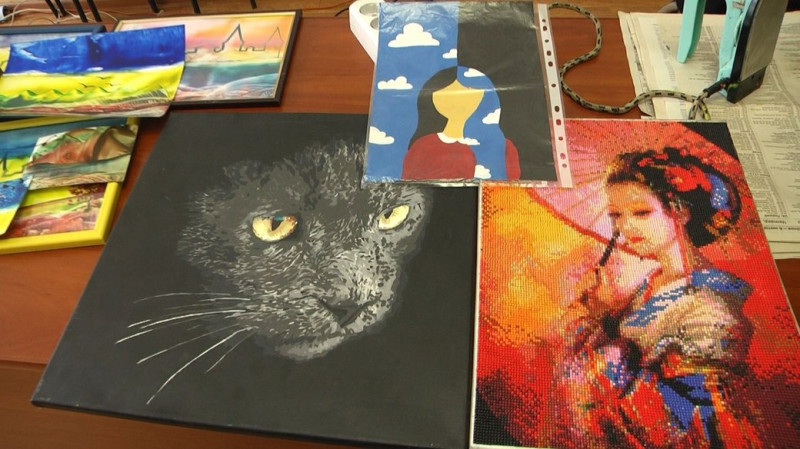 "Коли я поступила сюди, я побачила Крила, що він малює і мені було цікаво. Я підійшла подивилася, кажу: "Можна я теж спробую". Він каже: "так, звичайно". Ми спробували пару картин, мені це сподобалось. Воно заспокоює", — розповідає Катерина Бакуменко.