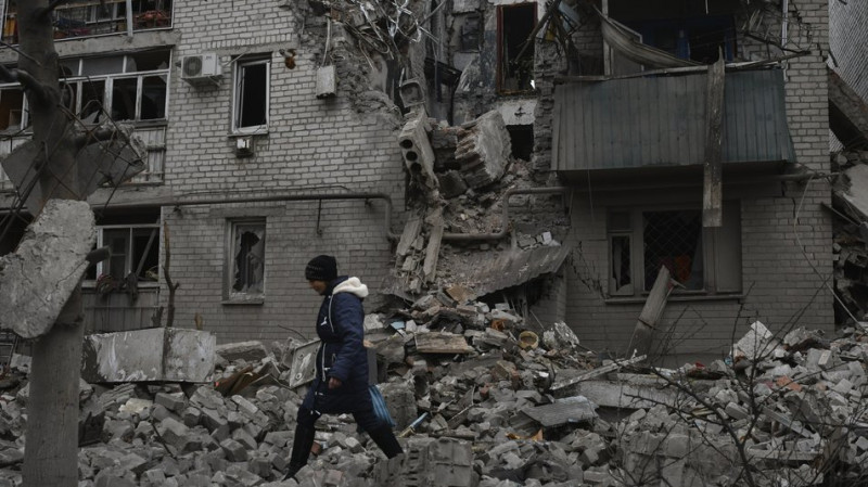 Жінка проходить повз уламки зруйнованого будинку після нещодавнього авіаудару Росії на Донеччині, Україна, 27 листопада 2022 р. Фото: АР