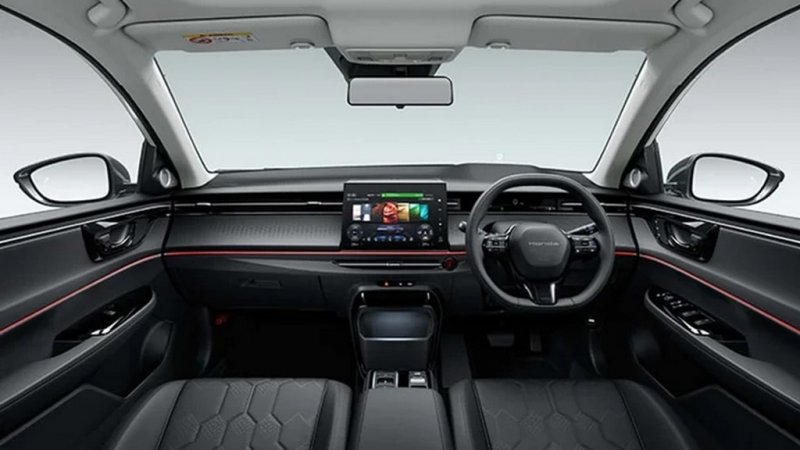 У салоні також ніяких змін порівняно з Honda e:NS2: встановлені вузький цифровий щиток приладів та великий 12,8-дюймовий тачскрін.