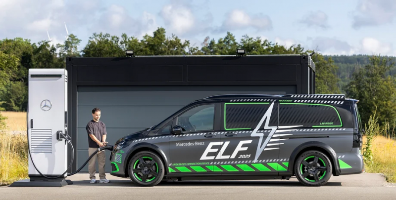 Новий Mercedes ELF – своєрідна пересувна лабораторія, яка досліджує можливості різних способів зарядки та використання авто в якості сховища енергії. Її створили на базі моделі EQV — електричного Mercedes V-Class.
