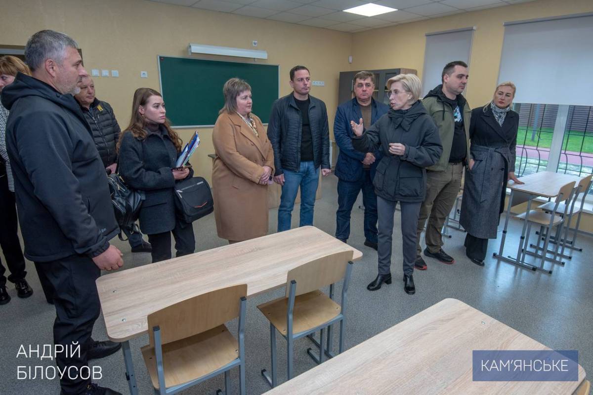 Також разом із Іриною Верещук відвідали низку важливих соціальних об’єктів Кам’янського. Побували в оновленому осередку для вивчення предмета «Захист України», де старшокласники здобувають практичні знання з тактичної медицини, самозахисту та основ безпеки. Тут створено сучасні умови для навчання та виховання патріотичної молоді.