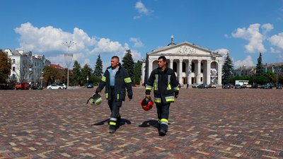 Гасили пожежу на даху театру і надавали домедичну допомогу травмованим в перші хвилини після ракетного обстрілу. Владислав Соколенко, Олексій Марченко та Валерій Моргацький були на місці ракетного удару у перші хвилини трагедії.