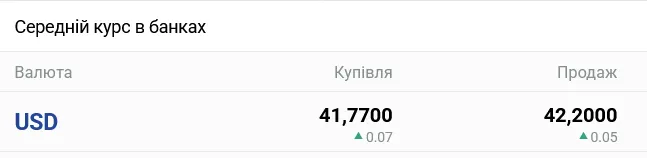 Відбулися зміни і в банках. Там курс готівкової американської валюти виставили на середньому рівні 41,77/42,2 грн (купівля/продаж), що: