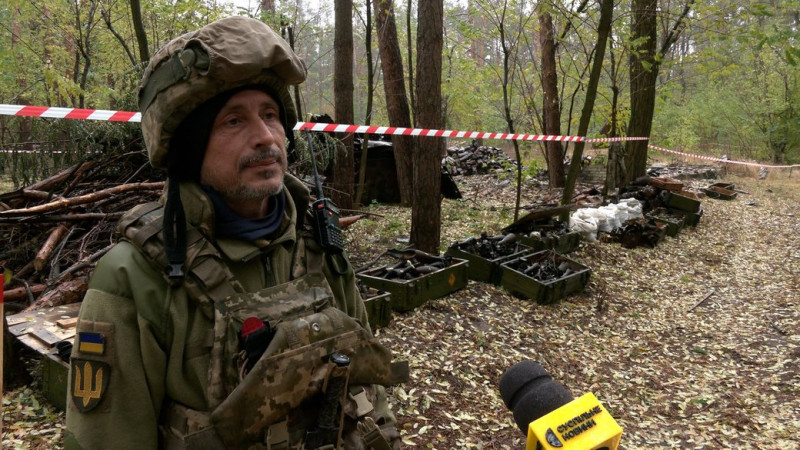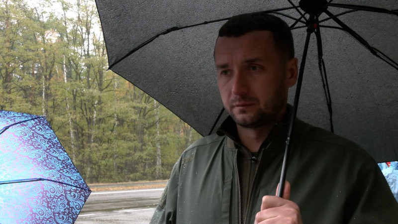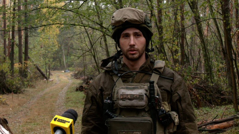 Командир батальйону Владислав Гулич. ФОТО: Суспільне Чернігів"Через особливості рельєфу, особливості забруднення тим самим масивом дерев, які посічені, порубані вибухонебезпечними предметами. Ще у нас в лісі є інженерно обладнані окопи, капоніри. Також здійснюється їх повна перевірка. якщо у нас проходила там смуга оборони, то на це виділяється дуже багато часу. Бо в нас є насип і ложбинка, які можуть облаштовуватися пастками, розтяжками або будь-якими видами мін, як протитранспортними, так і протипіхотними".