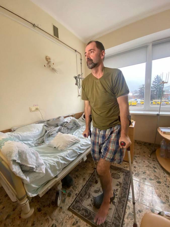 Історик Орест Круковський чітко сказав: йому потрібно відновитися і ходити, аби знову повернутися на фронт. Відтак щодня по кілька годин з ним працюють спеціалісти, і успіхи є – поступово чутливість у нозі відновлюється.