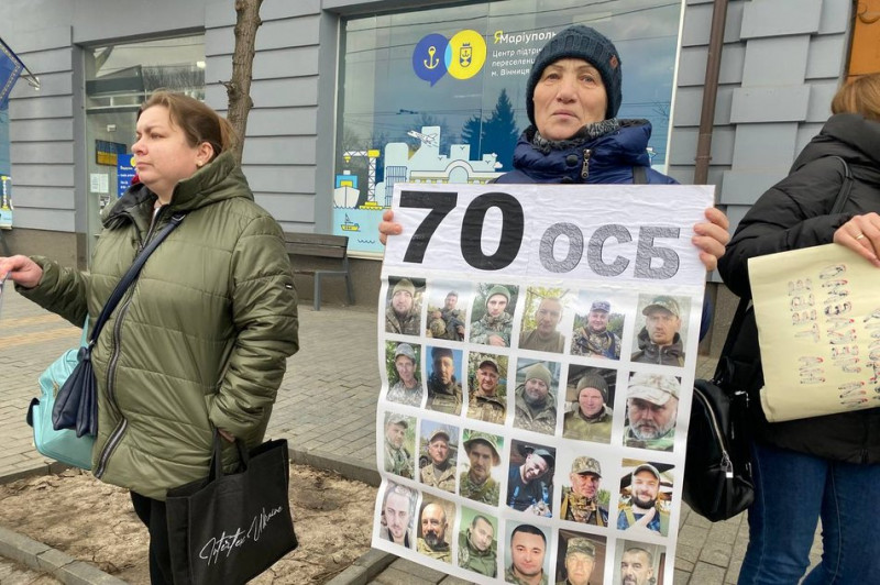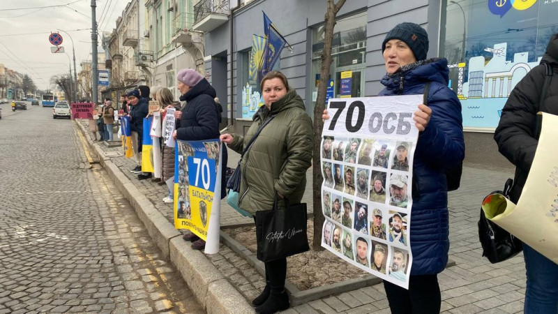 У Вінниці пройшла акція на підтримку полонених оборонців, яку зорганізували родичі військових. Учасники утворили "живий ланцюг" по обидва боки проїжджої частини у центрі міста.