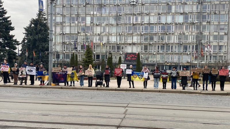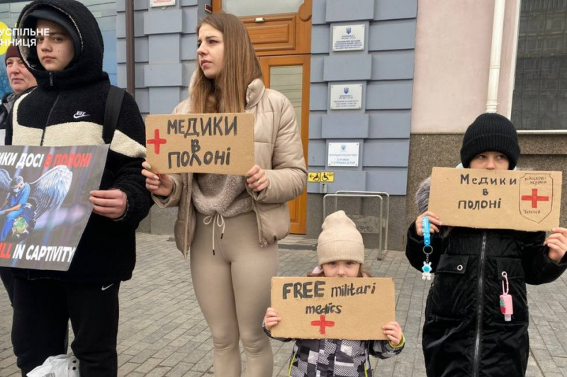В руках тримали плакати із написами: "Полон — це пекло", "Полон вбиває", "Досить почесного полону", "Free Azov", "Мені потрібен тато", "Полон — це тортури". За підрахунками Суспільного, зібралися понад пів сотні містян.