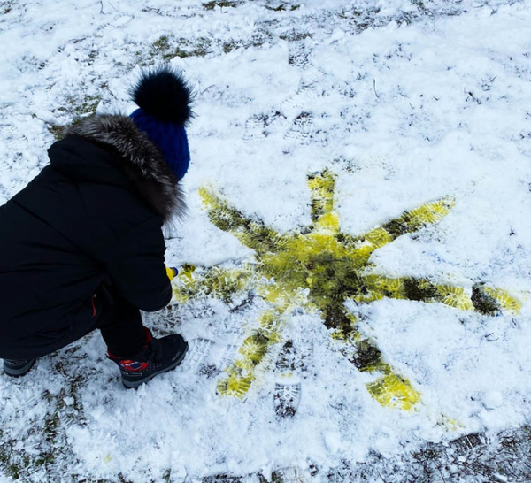 Зима доживає останні дні, але сніг ще не розтанув, чим і користуються юні художники.