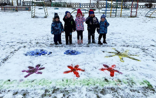 «Діти з нетерпінням чекали снігу, адже ігри та досліди зі снігом люблять всі. Наші дітки спробували бути художниками. Але малювали ми не на аркушах, а на снігові.