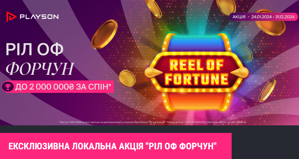 Одна з таких — Reel of Fortune Playson з можливим виграшем до ₴2 000 000 за спін. Розповідаємо, чому варто звернути увагу саме на це промо.