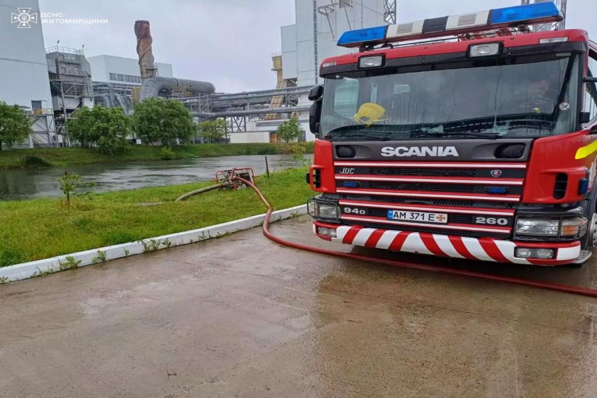 Зараз на одному з підтоплених приватних підприємств вогнеборці відкачують воду в м. Коростень.