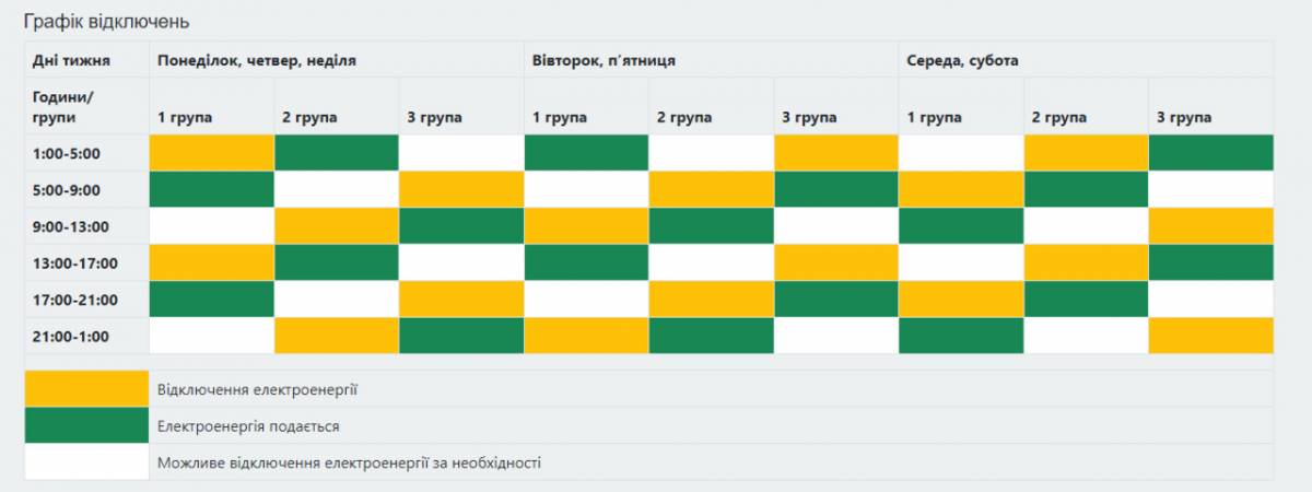 “Зверніть увагу на білі клітинки у графіку: якщо раніше була ймовірність, що у ці години буде відключення електроенергії, то тепер вона вища.
