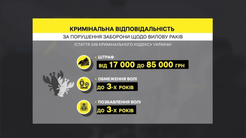 Кримінальна відповідальність за порушення заборони на вилов раків. Графіка: Суспільне Полтава