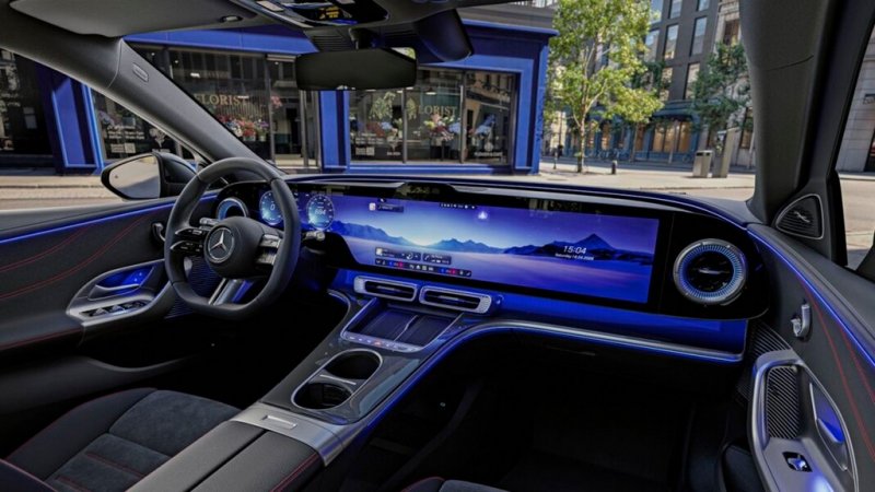 Седан також стане більшим за бензинову версію, що додасть простору в салоні, особливо для пасажирів ззаду. Інтер’єр зробили максимально технологічним: доступні системи MBUX Superscreen та MBUX Hyperscreen з кількома екранами та різними режимами відображення.