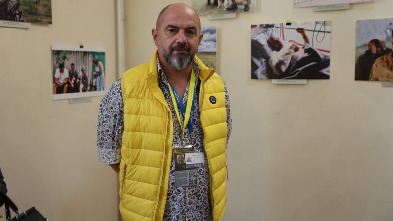Виставку створила та представила команда TVR — суспільного мовника Румунії. Вони їздили в Україну сім разів. Останні з них — в гарячі точки, зокрема, під Бахмут.