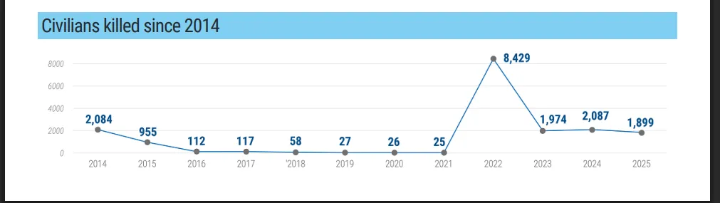Так, у 2025 році станом на 1 жовтня російські війська вбили в Україні вже 1899 мирних жителів, ще понад 9 тисяч цивільних зазнали поранень. Такі дані оприлюднили в ООН