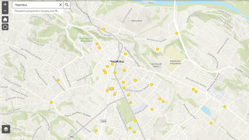 Пункти незламності у місті Чернівці. Скріншот з сайту Кабінету міністрів України