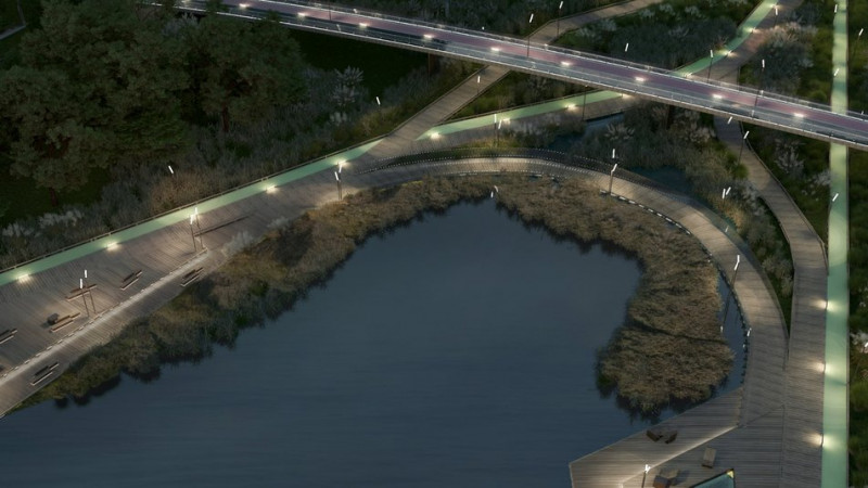 Згідно з планом, у парку будуть зони для проведення заходів просто неба, ігрові майданчики, спортивні майданчики, майданчики відпочинку та зони для вигулу собак.