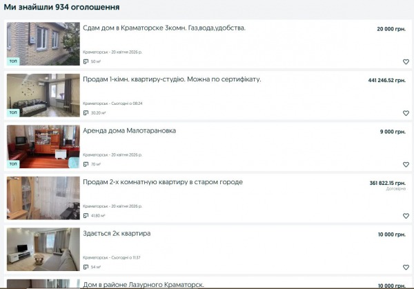 У Краматорську на ринку безліч пропозицій щодо продажу нерухомості. Фото: olx.ua