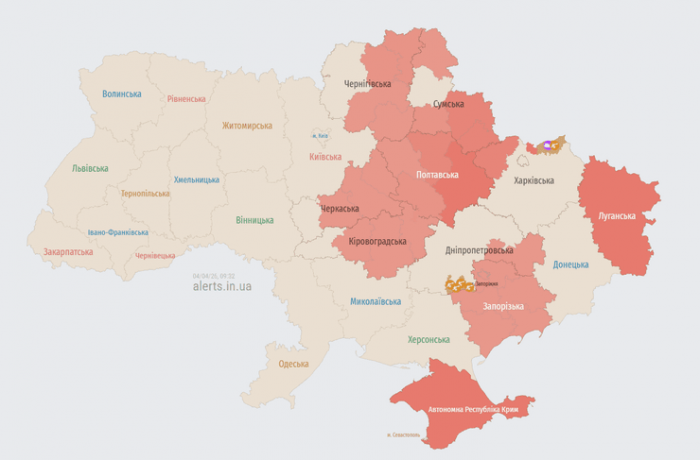 Карта повітряних тривог Фото: скріншотНа момент виходу матеріалу у деяких регіонах України повітряна тривога тривала через загрозу БПЛА.
