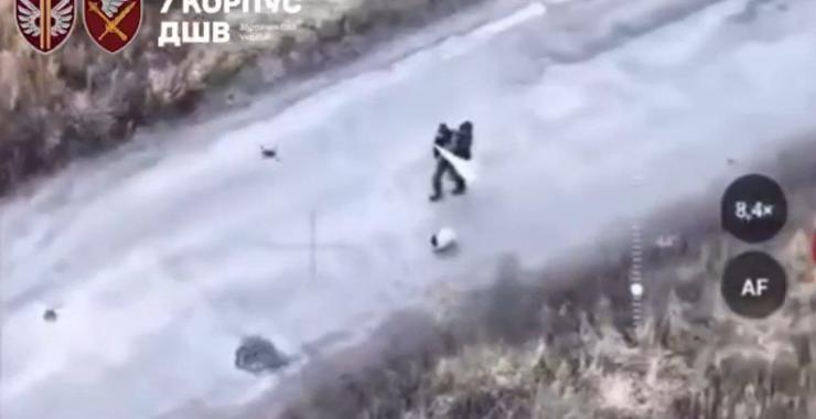 Чоловіки, судячи з відео, виходили з тимчасово окупованого села разом із собакою, піднявши білий прапор. Росіяни убили їх не одночасно: спочатку дрон смертельно поранив одну людину, а потім інший — другу.
