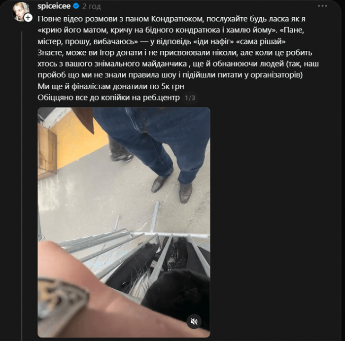 Згодом, коли авторка допису та її друзі “запідозрили обман”, то негайно звернулися до пана Кондратюка щодо цієї ситуації. Творець шоу заявив, що він особисто не брав ніяких коштів, та попросив показати ту саму особу, якій юзерка передала гроші.