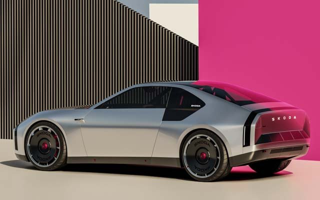Концепт виконаний у фірмовій мові дизайну Modern Solid: чисті геометричні лінії, мінімум деталей і контрастні вставки на спойлері, порогах та дифузорі. Під боковим вікном інтегровано повітрозабірник, який може охолоджувати батарею. Серед технологічних рішень – камери замість дзеркал, приховані фари та нова світлова підписка Tech-loop, вперше показана на концепті Skoda Vision O.