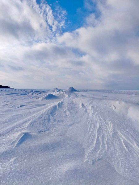 На Київському морі неподалік столиці з'явилася незвична зимова локація зі сніговими дюнами. Фото: "Київ ІНФО" / Telegram