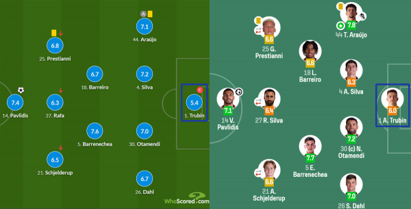 Аналогічним чином гру Трубіна оцінив SofaScore. У цьому випадку у воротаря 6.0 бала, що знову-таки є найнижчою оцінкою у «Бенфіці» та другим найгіршим показником матчу — після 5.5 бала у згаданого Віктора.