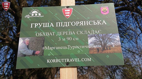 В районі селища Підгори, що в Марганці є унікальний природний об’єкт – Підгорянська груша. ЇЇ обхват – 3 м 90 см. Це одна з самих великих та мабуть найстаріших груш в Україні. Нещодавно місцеві активісти з товариства “Марганець Туристичний” встановили біля неї інформаційну табличку.