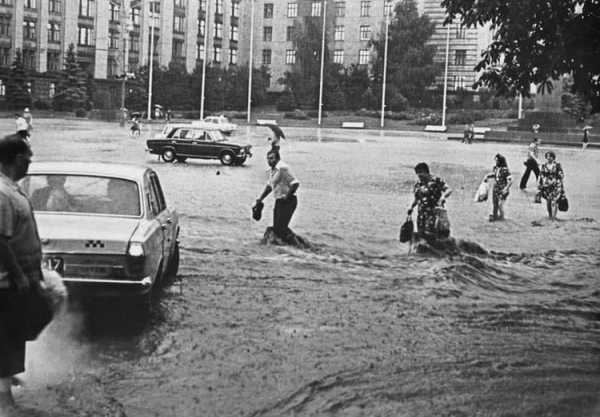 «28 липня 1977 року. Майдан імені Леніна. Потоп після зливи. Автор фото Володимир Рязанов», – йдеться у повідомленні.