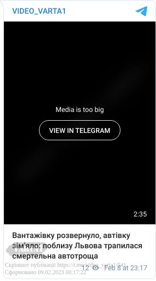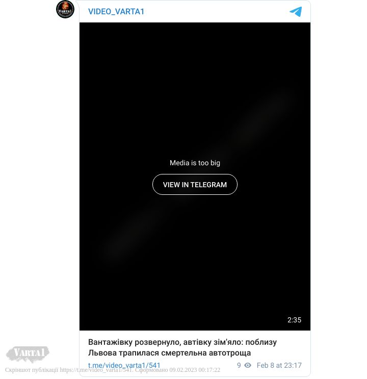 Сьогодні ввечері, 8 лютого, близько 22:45 год., на трасі Київ — Чоп біля населеного пункту Запитів сталася ДТП з потерпілими.