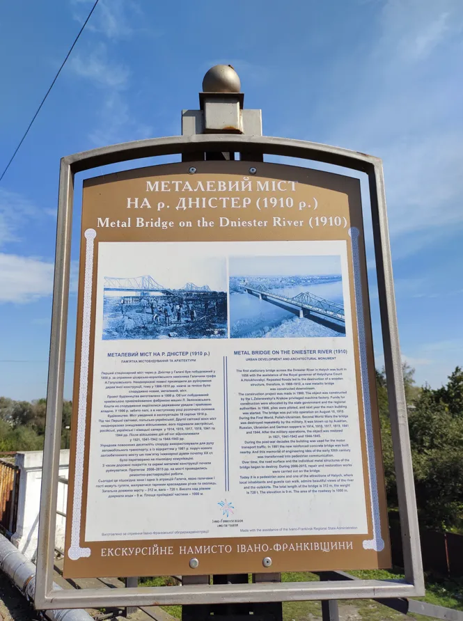 Уявіть собі древній Галич, де люди століттями переправлялися через бурхливий Дністер на хитких човнах і паромах. Захоплююче, але небезпечно! У 1858 році тут з’явився перший дерев’яний міст, але він був ненадійним і постійно страждав від весняних повеней.На початку XX століття краківське конструкторське бюро розробило проєкт нового металевого мосту. Будівництво тривало кілька років і завершилось 18 серпня 1910 року, коли було відкрито новий металевий міст довжиною 312 метрів.