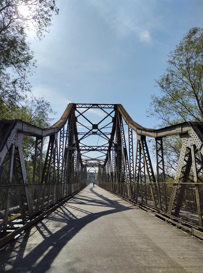 Цей міст став значним досягненням інженерної думки свого часу. Його конструкція складається з чотирьох прольотів різної довжини, що було складним завданням для інженерів того періоду. Ажурна структура мосту нагадує мереживо, виткане з металу, що додає йому естетичної привабливості.Міст пережив дві світові війни, його неодноразово руйнували та відбудовували.