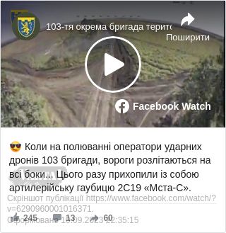 “Коли на полюванні оператори ударних дронів 103 бригади, вороги розлітаються на всі боки… “, — повідомили на сторінці 103-ї бригади ТРО.