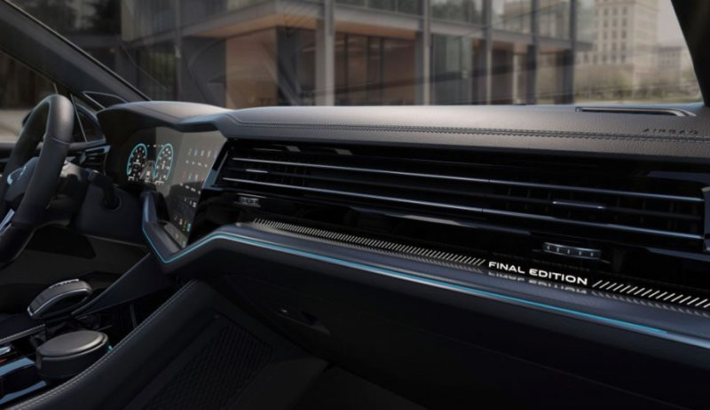 Прощальна версія Touareg Final Edition виконана у стриманому стилі, без технічних сюрпризів, але з фірмовими акцентами. Напис “Final Edition” нанесений лазером на віконну рамку задніх дверей, витиснений на шкіряній обшивці важеля коробки передач і з’являється з підсвіткою на панелі приладів та порогах.
