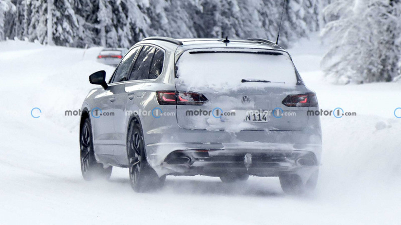 Невеликі зміни в екстер’єрі випробувачі вдало закрили наклейками. Зокрема, прикриті передній бампер, повітроводи та оздоблення передньої оптики. Задні ліхтарі залишилися незмінними. У прототипа трапецієподібні патрубки вихлопної системи, як у Touareg R, але при цьому потужний спойлер на багажних дверях відсутній.