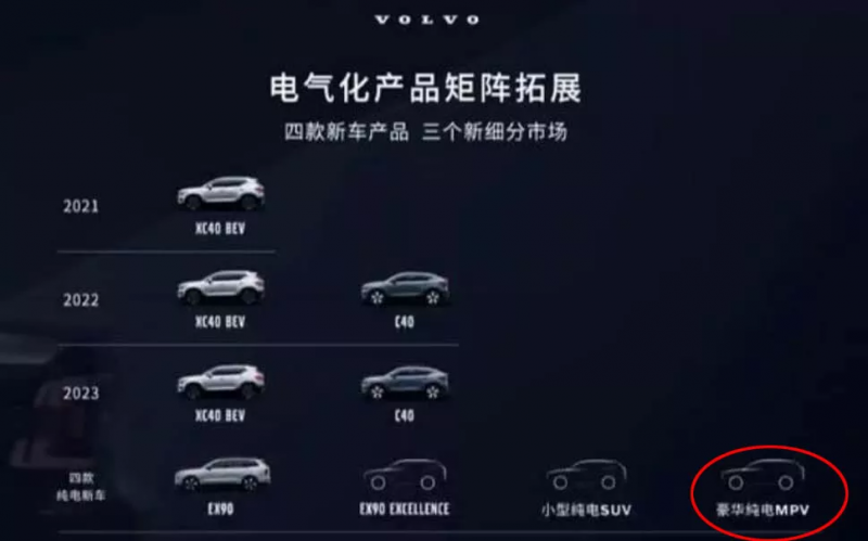 Китайські ЗМІ розтиражували слайд із закритої презентації Volvo Cars Greater China Sales Company, на якому видно, що у 2023 році Volvo випустить у Китаї шість автомобілів. Окрім XC40 BEV, C40, EX90 та EX90 Excellent на черзі у серію неназваний позашляховик та електричний мінівен.