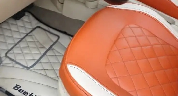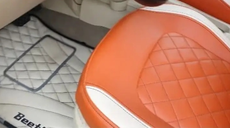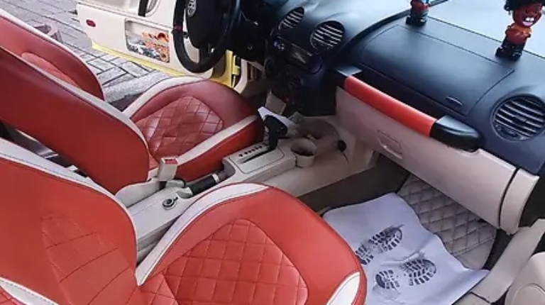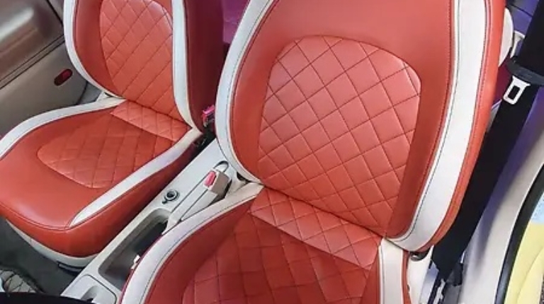 Інтер’єр тут проста бомба. Чого тільки варте оздоблення натуральною шкірою коралово-бежевого кольору, з ромбоподібними прострочками. Її обтягнуті не лише крісла, а й застелена підлога замість гумових килимків. Меломанам сподобається потужна акустична система KICX – з чотирма динаміками на задній полиці.