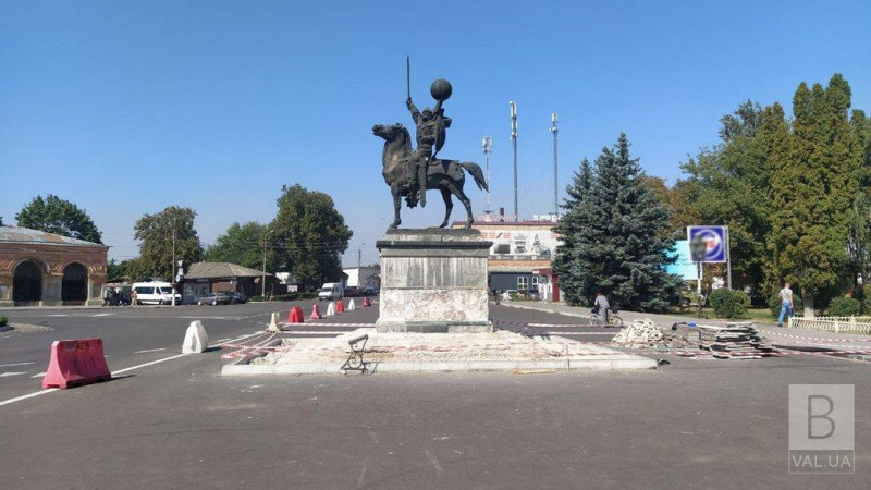Наразі пошкоджені плити постаменту та плитку довкола його підніжжя демонтували.