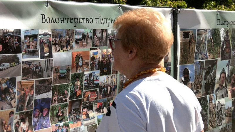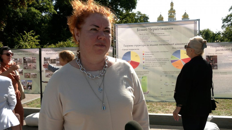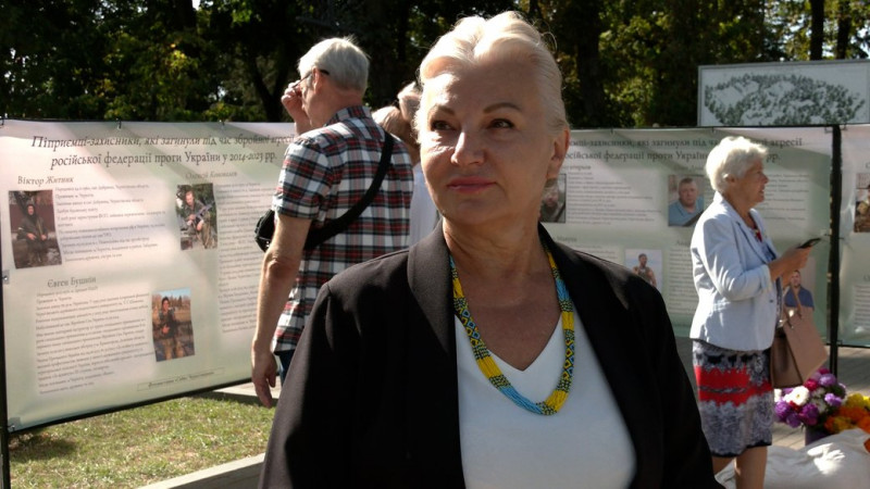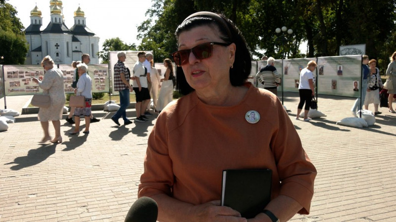 "За кожною світлиною, яка тут відображена на цьому стенді, – це ціла людська історія", – каже голова ГО "Спілка жінок Чернігівщини" Тетяна Роєва.